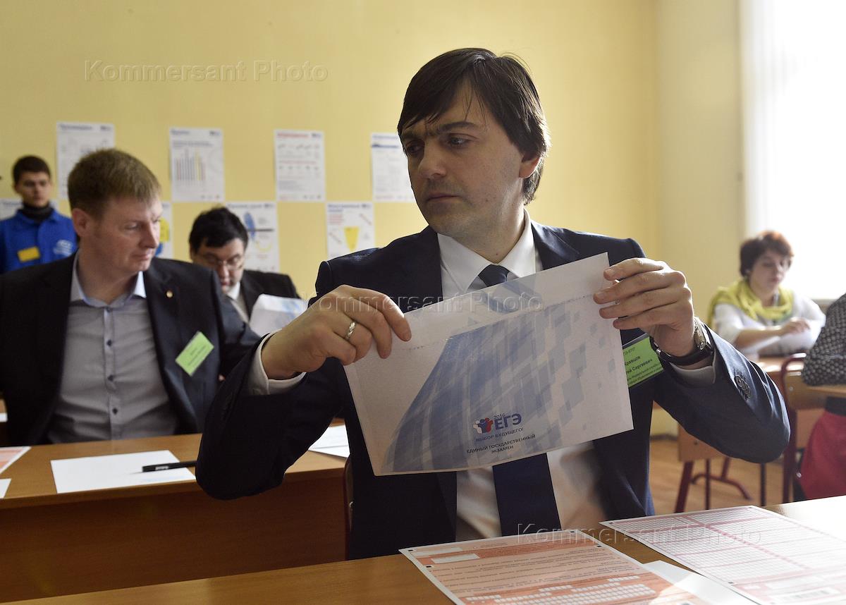 Руководитель Федеральной службы по надзору в сфере образования и науки Сергей Кравцов (в центре) во…