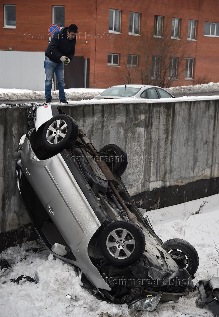 Легковой автомобиль, упавший с многоярусной парковки, в Строгино.