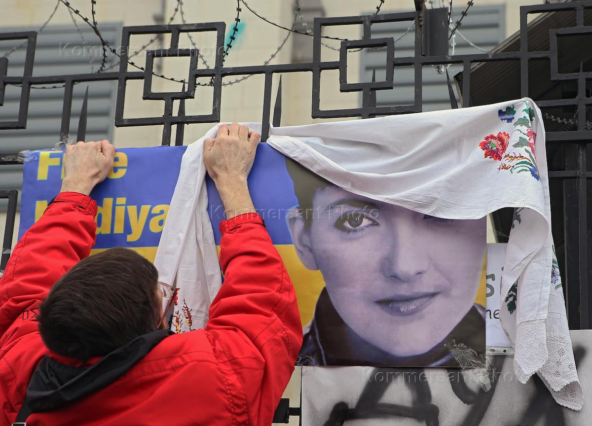 Лидер ВО "Батькивщина" Юлия Тимошенко (в центре) на митинге в защиту украинской летчицы Надежды…