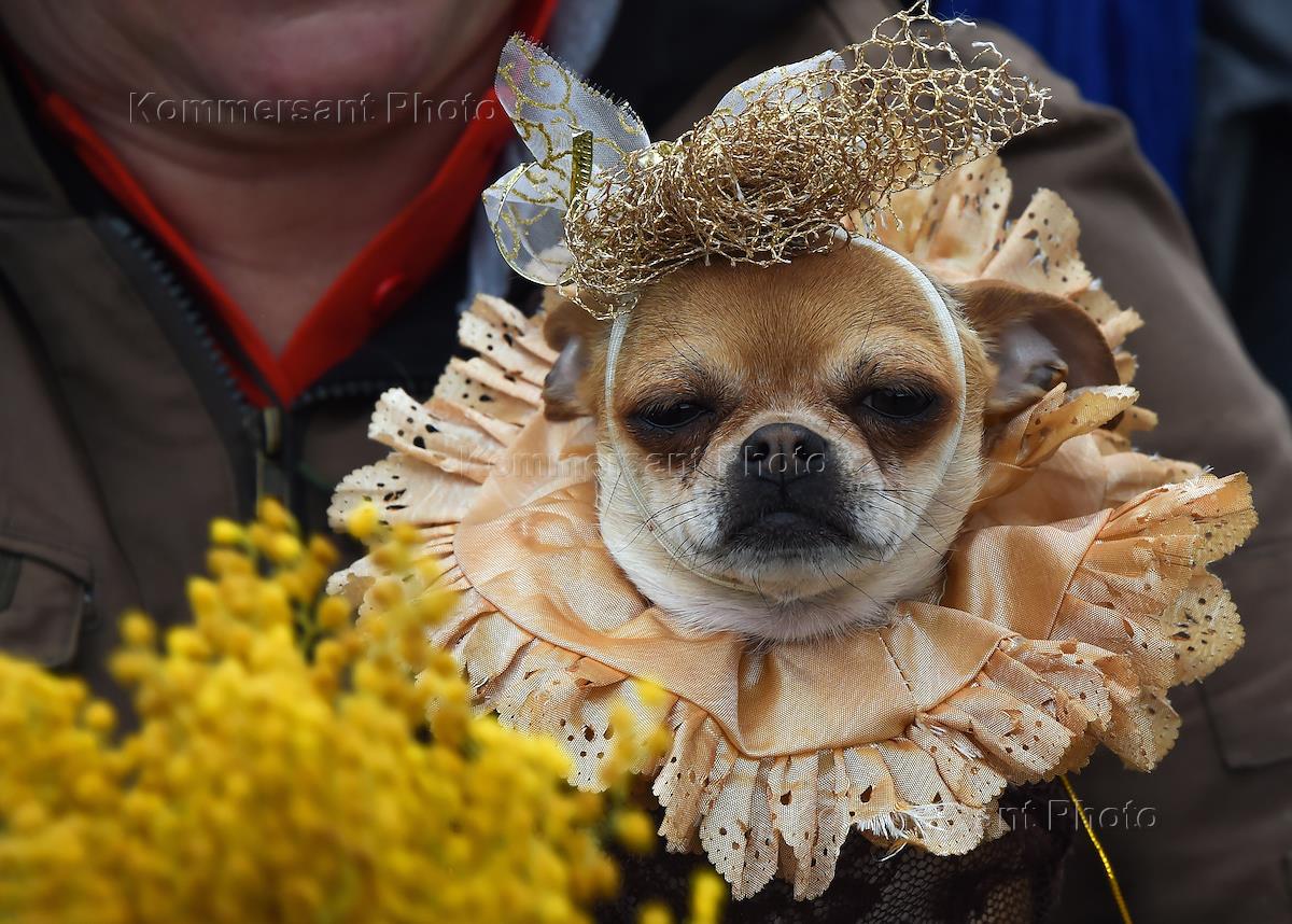 "Фестиваль зимнего плавания". Жанровая фотография. Маленькая собачка на руках у мужчины и ветка…