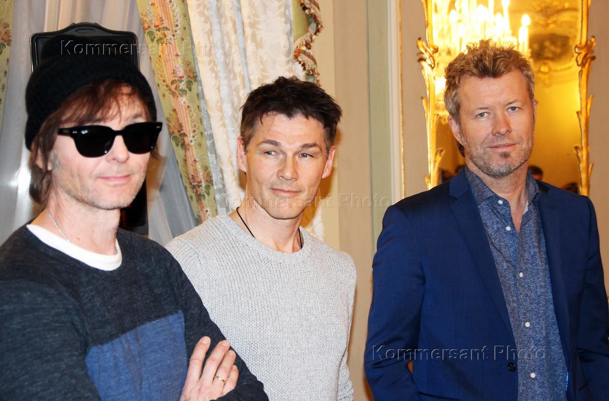 Музыканты норвежской группы A-HA предствляют на пресс-конференции в отеле "Талион" в рамках мирового тура Cast in Steel.