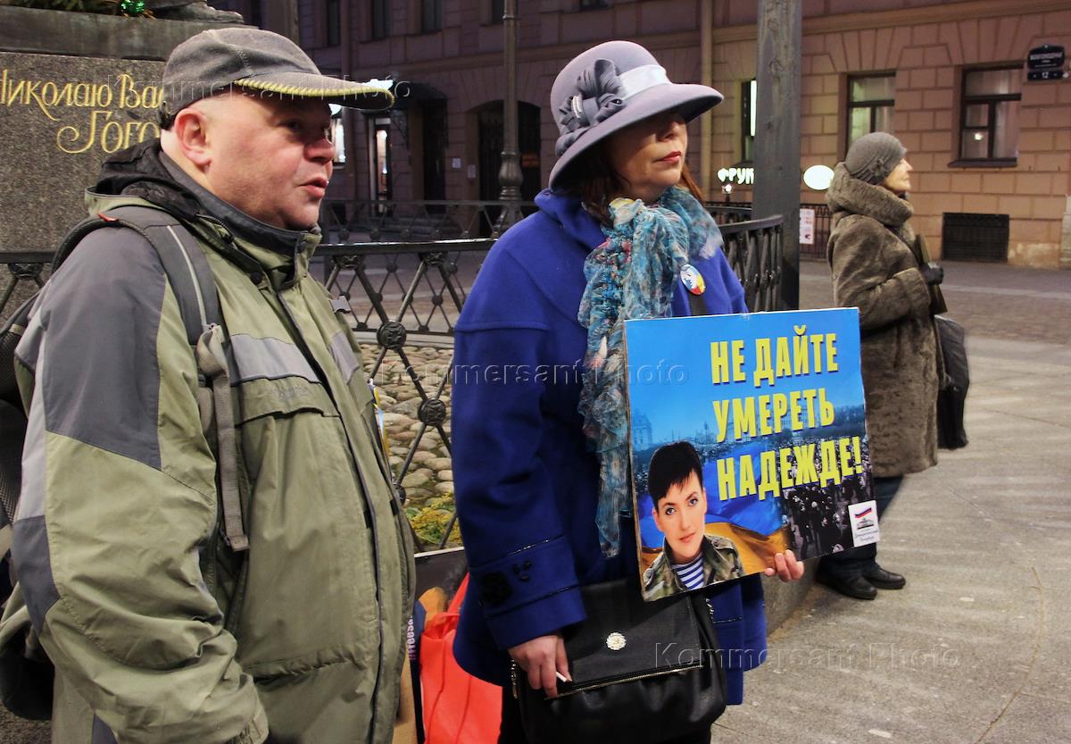 Одиночный пикет в поддержку Надежды Савченко на Невском проспекте.