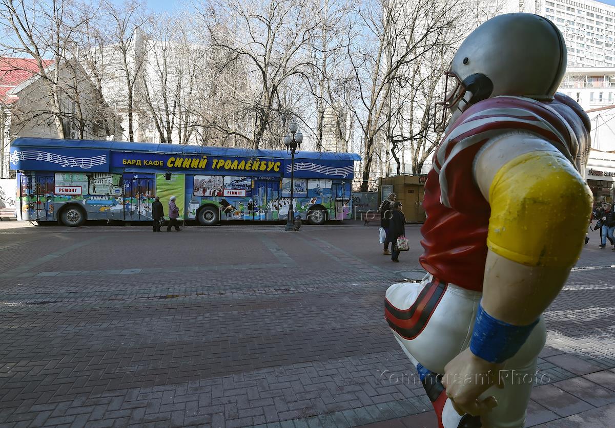 Виды Москвы. Бард-кафе "Синий троллейбус" на улице Старый Арбат.
