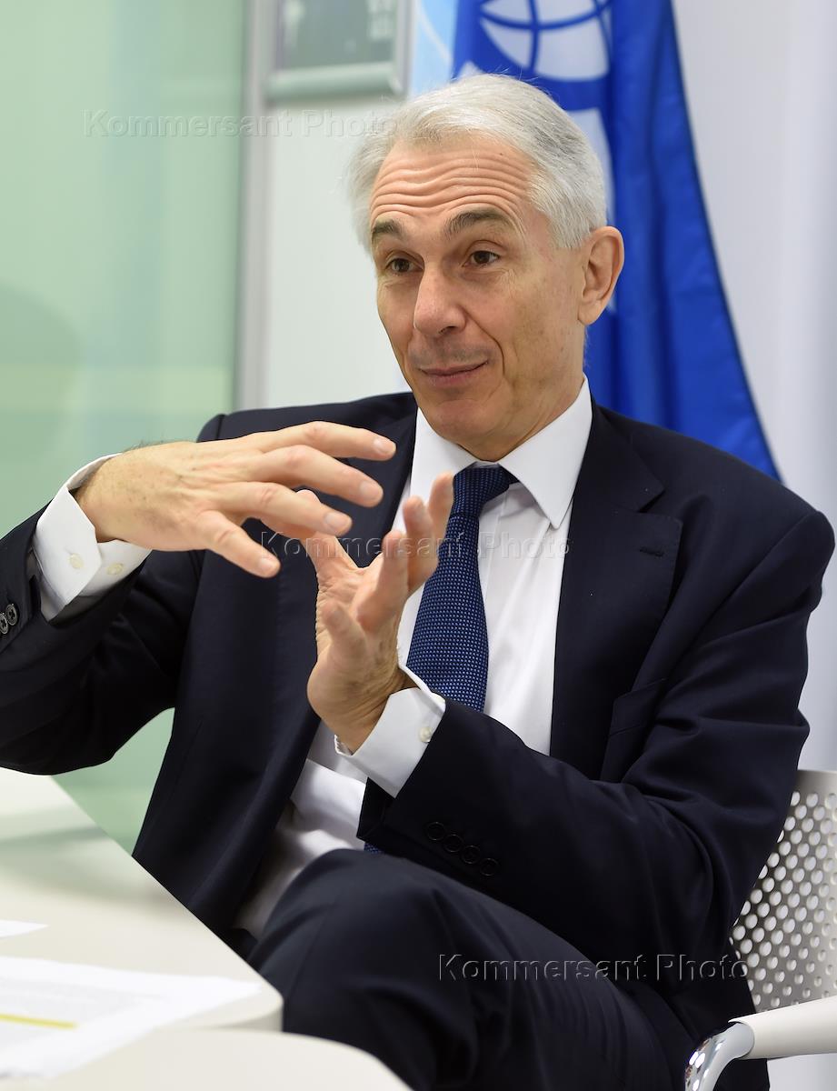 Глава IATA/Международной ассоциации воздушного транспорта Тони Тайлер во время интервью.