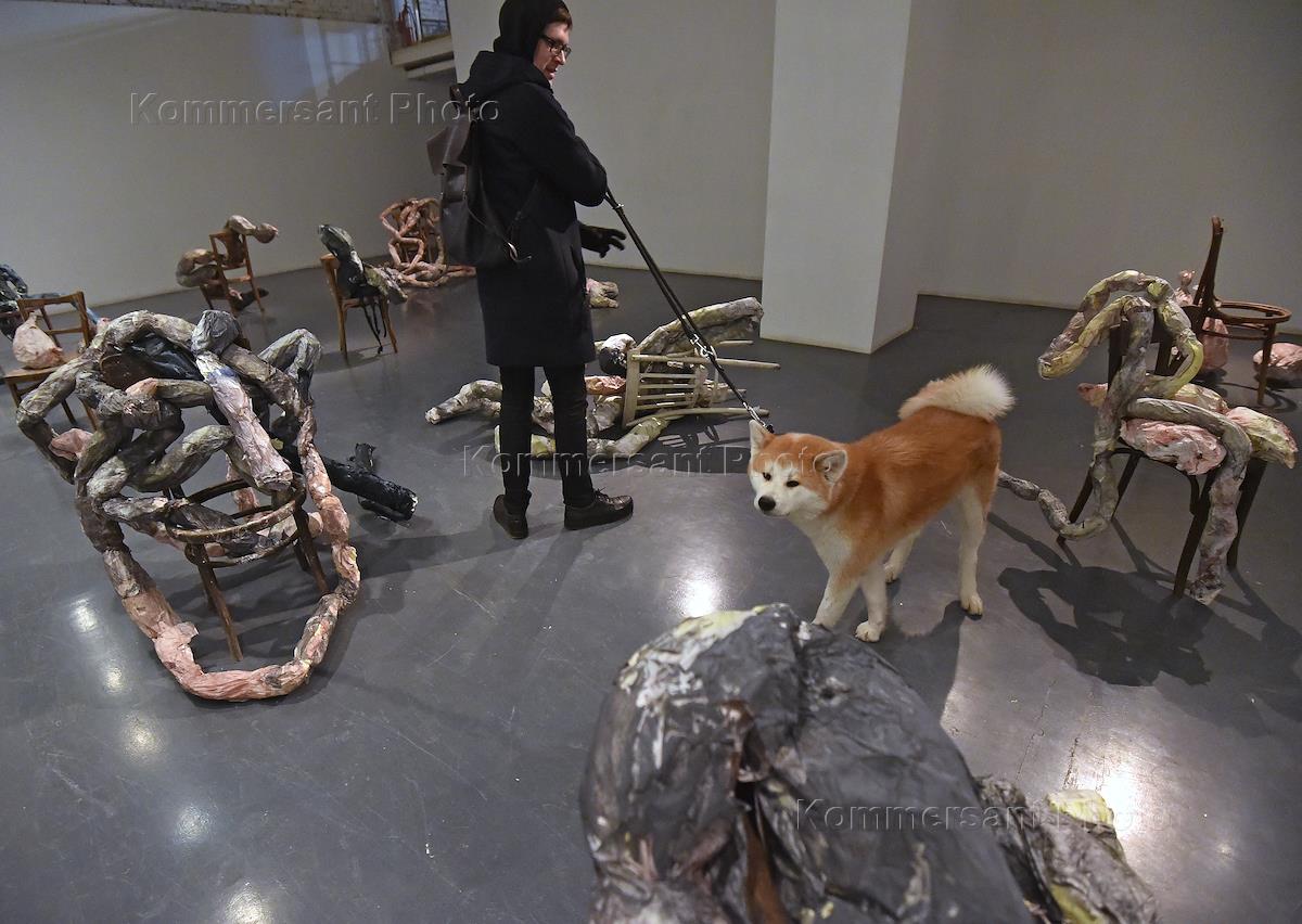 Посетитель на церемонии открытия выставки художника Дарьи Кротовой "Натюрморты" в галерее Печерской…