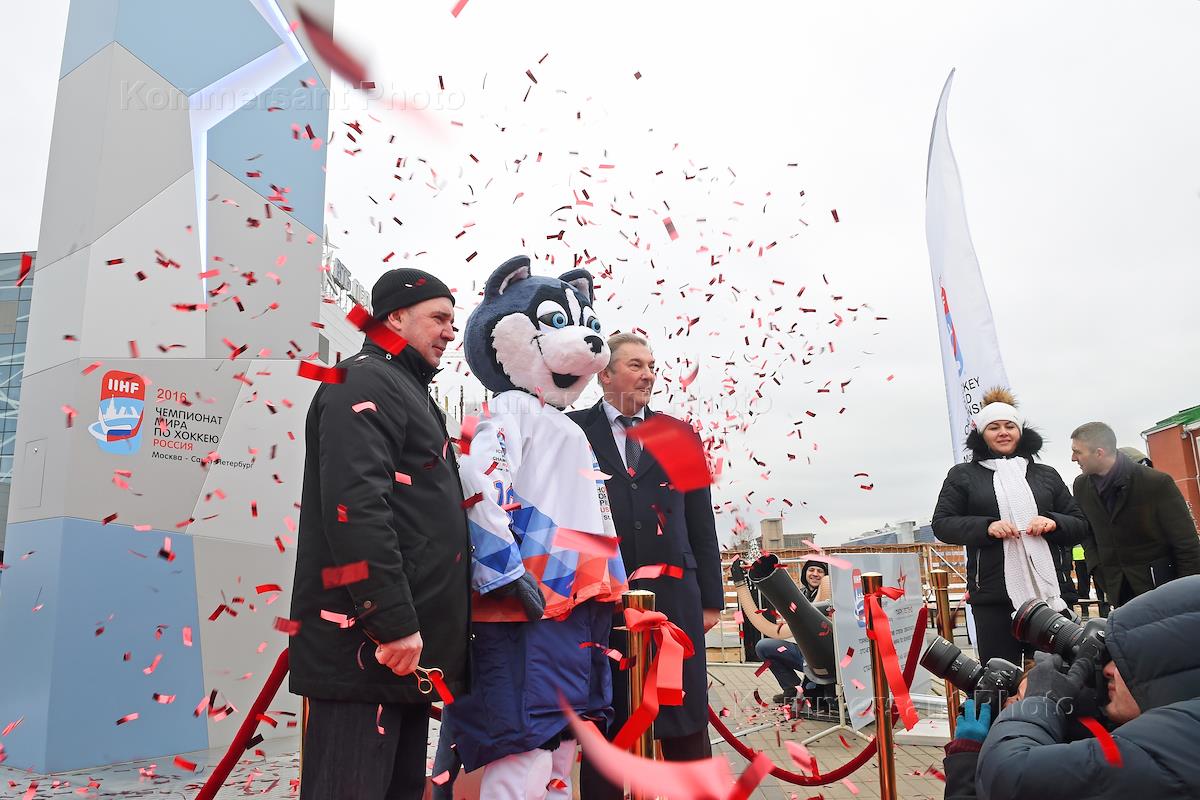 Открытие стелы обратного отсчета до старта чемпионата мира по хоккею в спортивно-развлекательном квартале «Парк Легенд».