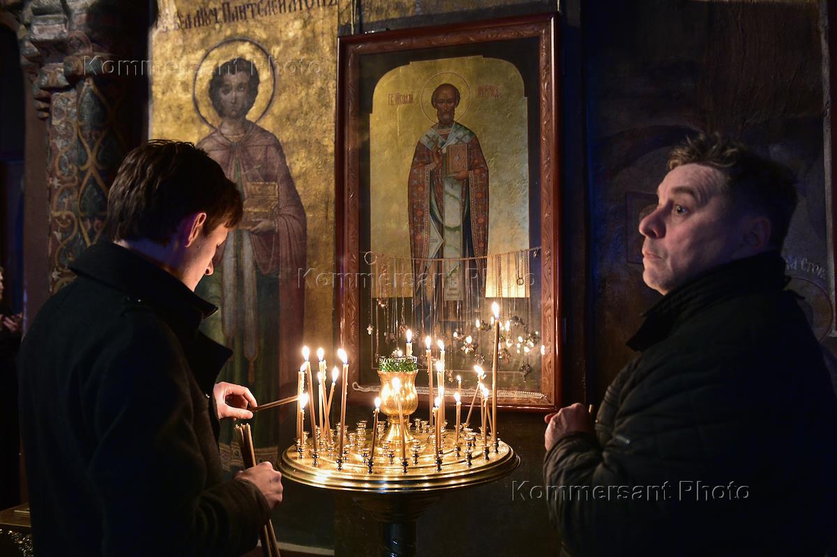 Верующие во время совершения Патриархом Московским и Всея Руси Кириллом повечерие с чтением Великого…