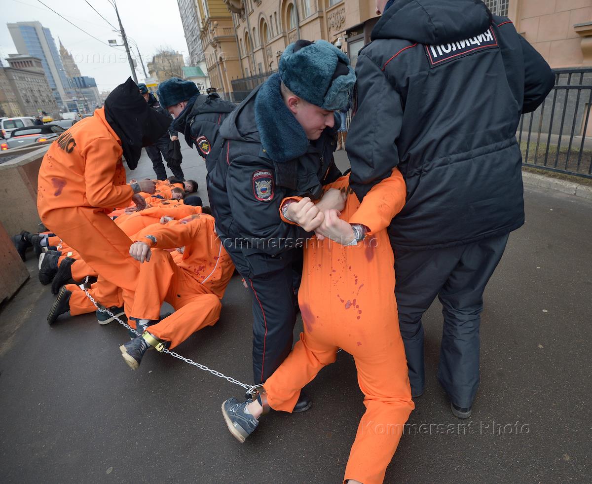 Сотрудники полиции во время задержания участников одиночных пикетов представителей движения…