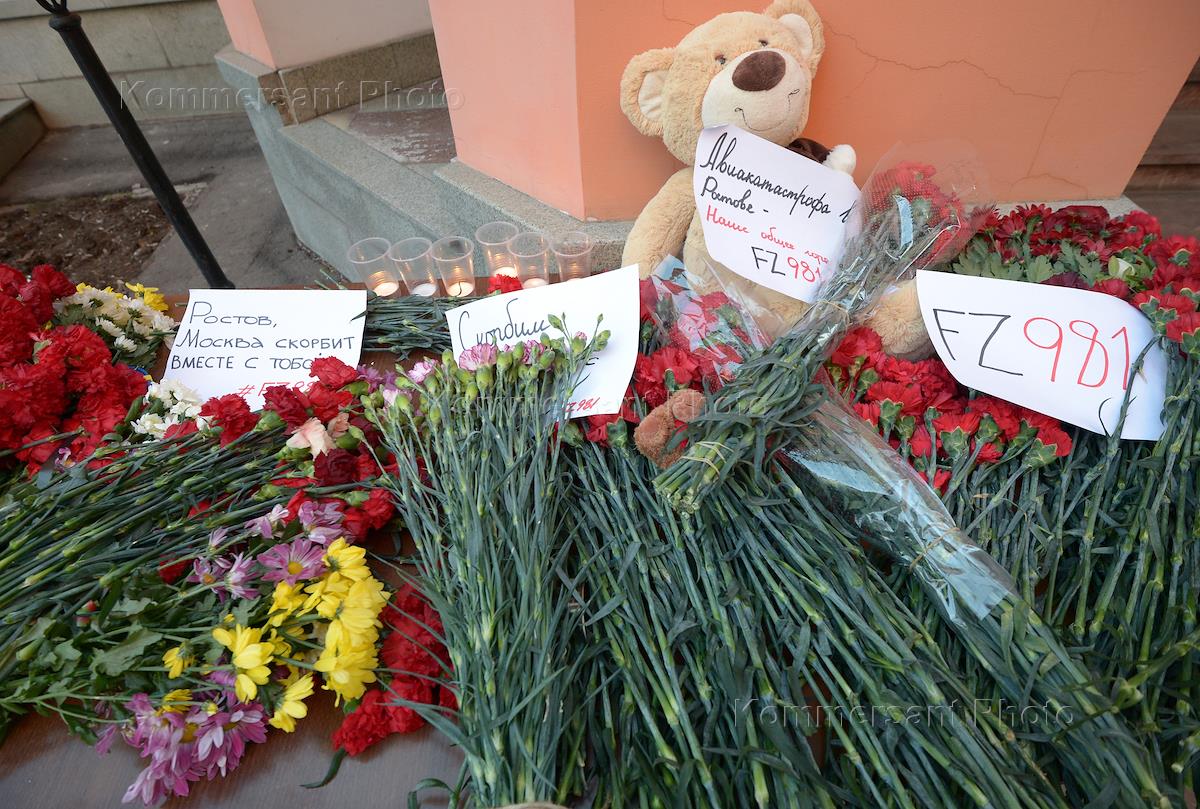 Москвичи несут цветы к зданию представительства Ростовской области в Москве. В аэропорту…