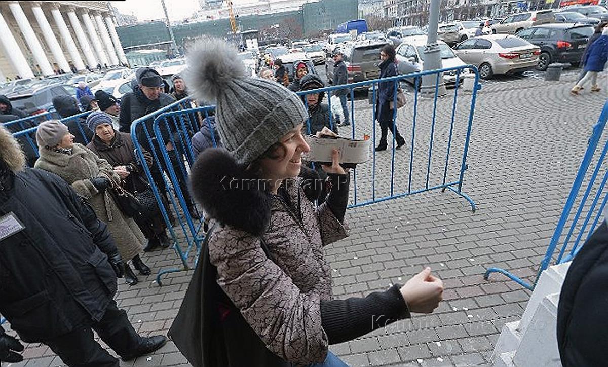 Очередь за билетами в Государственный академический Большой театр (ГАБТ) у касс ГАБТ. Ликвидация…