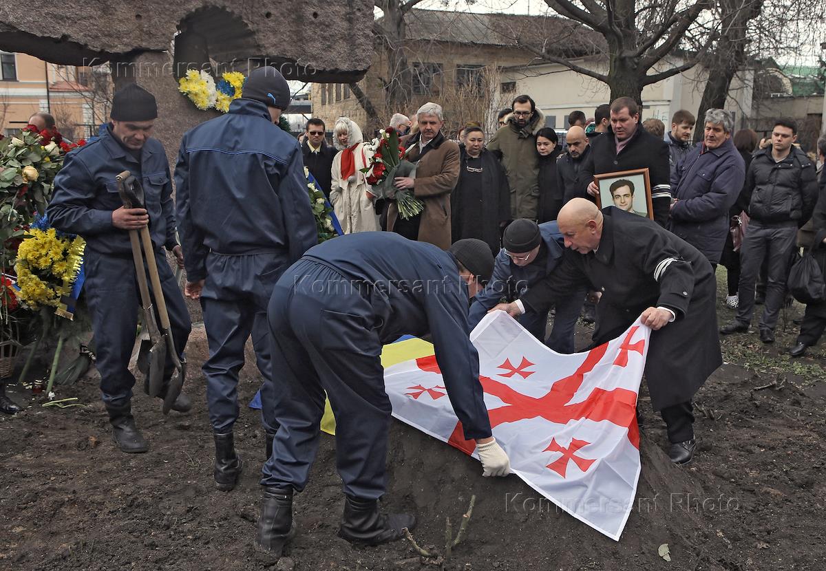 Похороны украинского журналиста Георгия Гонгадзе, убитого в 2000 году, прошли во дворе церкви Николая Набережного на Подоле.