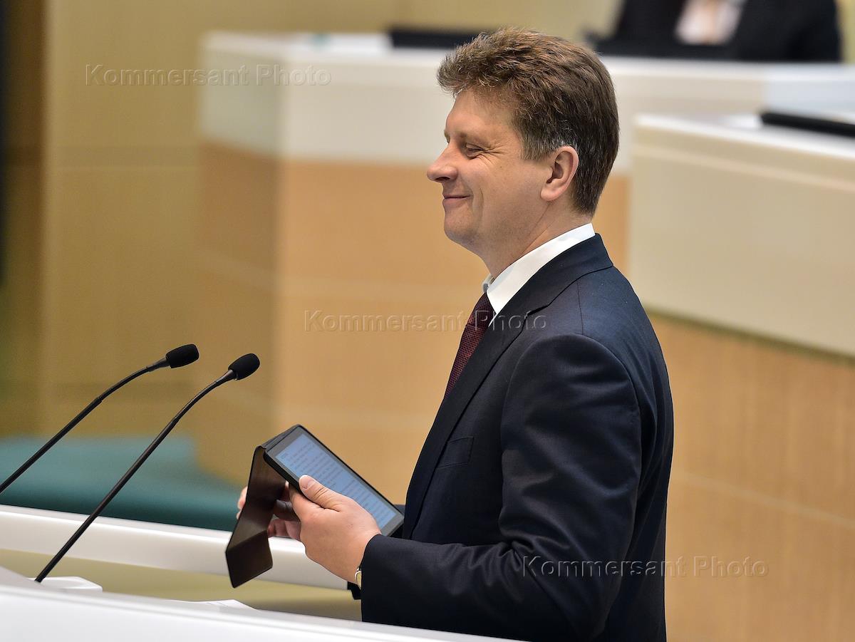 Министр транспорта России Максим Соколов во время пленарного заседания Совета Федерации России.
