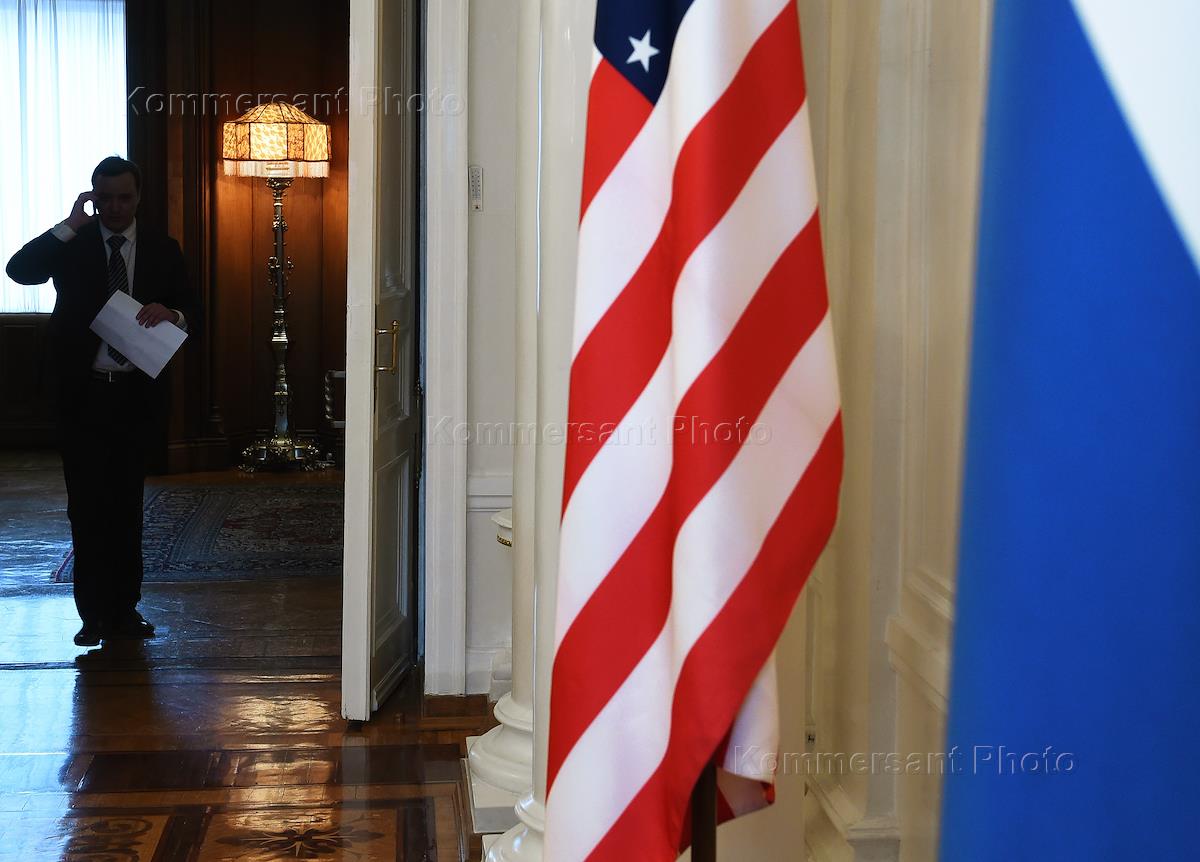 Государственный флаг США в Доме приемов МИД во время переговоров министра иностранных дел России…