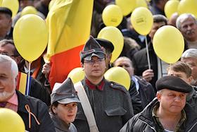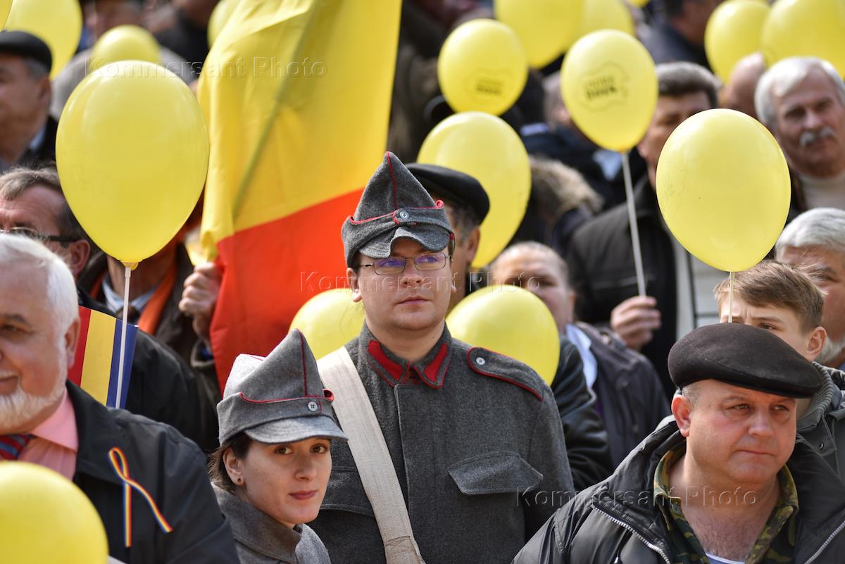 Марш cторонков объединения Молдавии с Румынией, так называемых унионистов, прошел в центре Кишиневе.