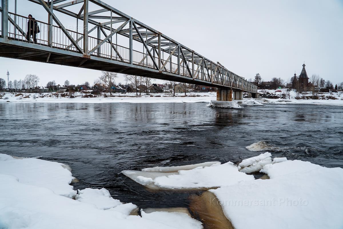 Виды Кеми. Пешеходный мост через реку Кемь.