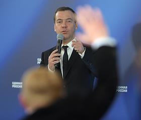 Экономика и бизнес Образовательный форум "Кандидат" для зарегистрированных участников "праймириз", оргазнизатор партия "Единая Россия". Выступление лидера партии, председателя правительства Дмитрия Медведева.