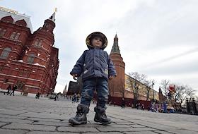Жанровая фотография. Ребенок стоит на Манежной площади.