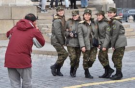 Жанровая фотография. Военнослужащие во время совместного фотографирования на Красной площади.