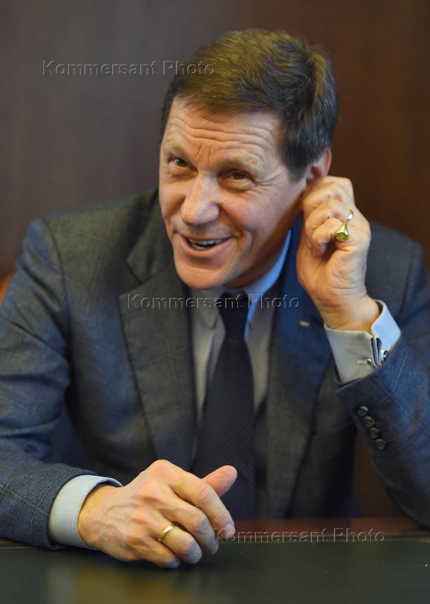Первый заместитель председателя Государственной думы России Александр Жуков во время интервью в…