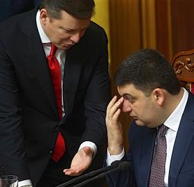 Депутат Верховной Рады Украины, лидер Радикальной партии Олега Ляшко (слева) и председатель…
