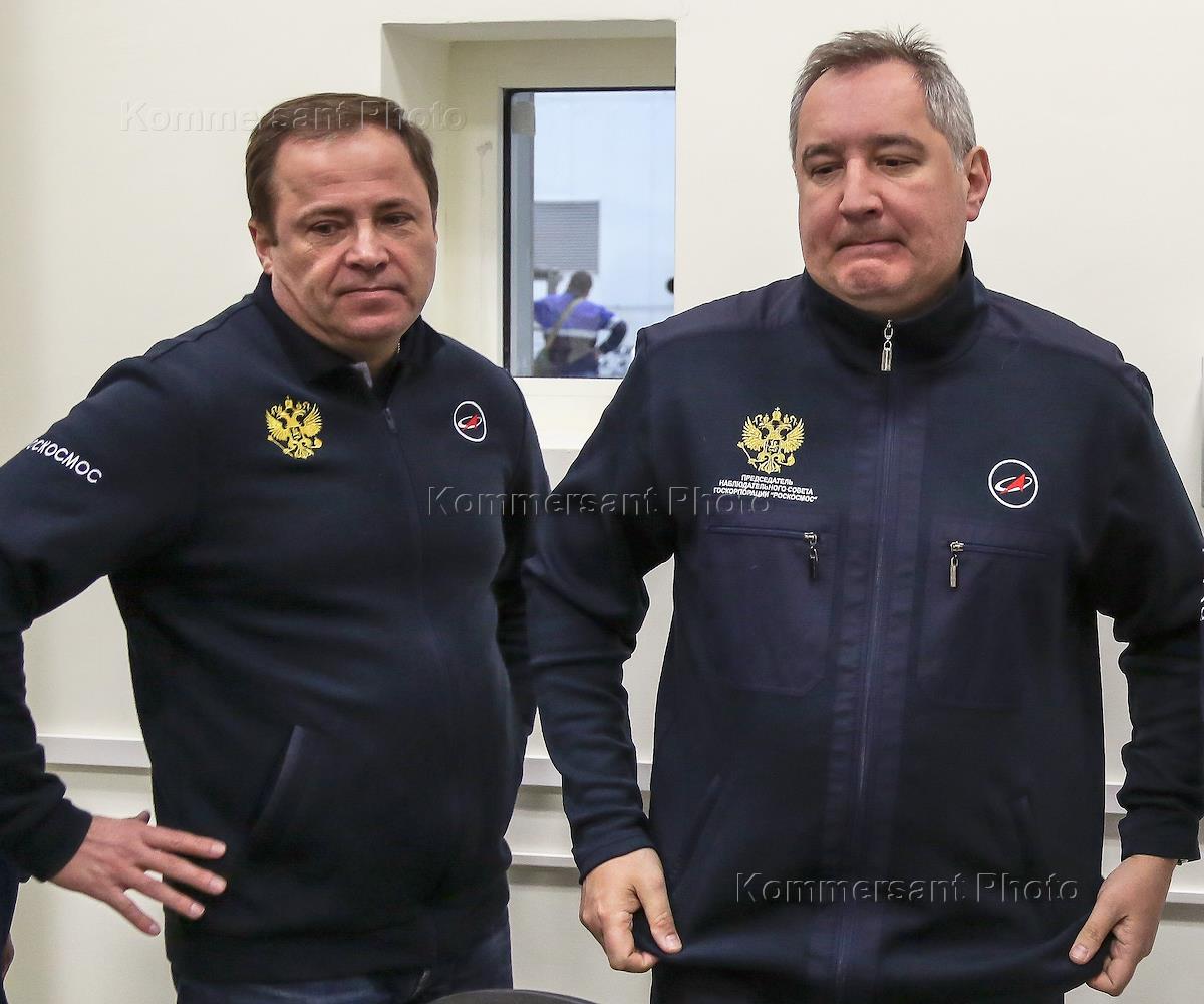 Генеральный директор государственной корпорации "Роскосмос" Игорь Комаров (слева) и заместитель…