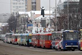 Виды Екатеринбурга. Трамвайная пробка на проспекте Ленина.
