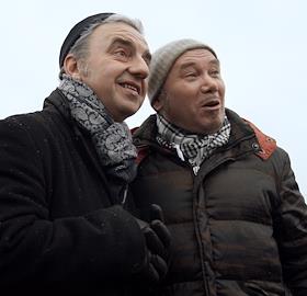 Музыканты группы "Чайф" Владимир Шахрин (слева) и Владимир Бегунов (справа) на церемонии запуска…