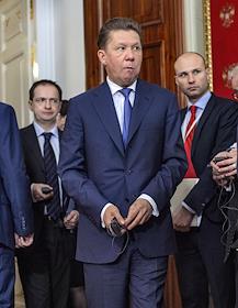 Председатель правления компании "Газпром" Алексей Миллер (в центре) во время встречи президента…