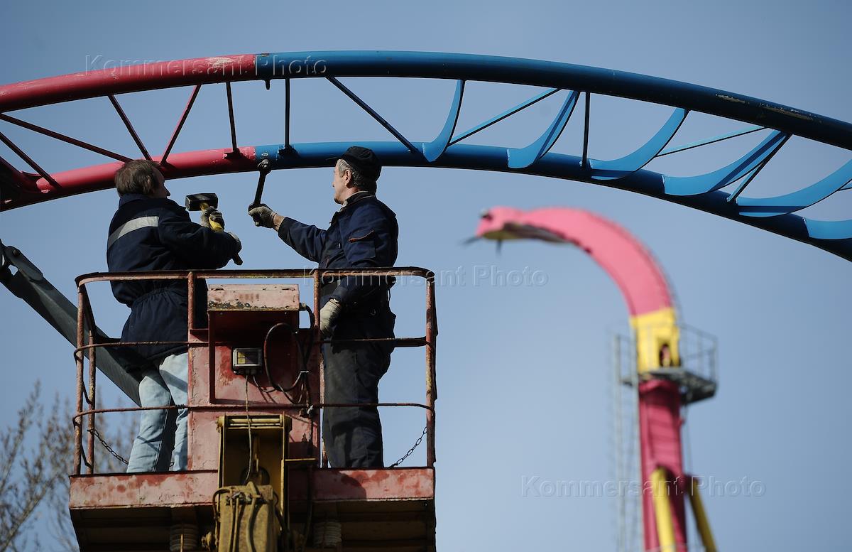 Демонтаж аттракционов на территории ВДНХ (ВВЦ).