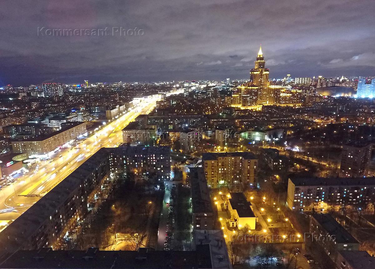 Виды вечерней Москвы. Ленинградский проспект и жилой комплекс "Триумф-палас".