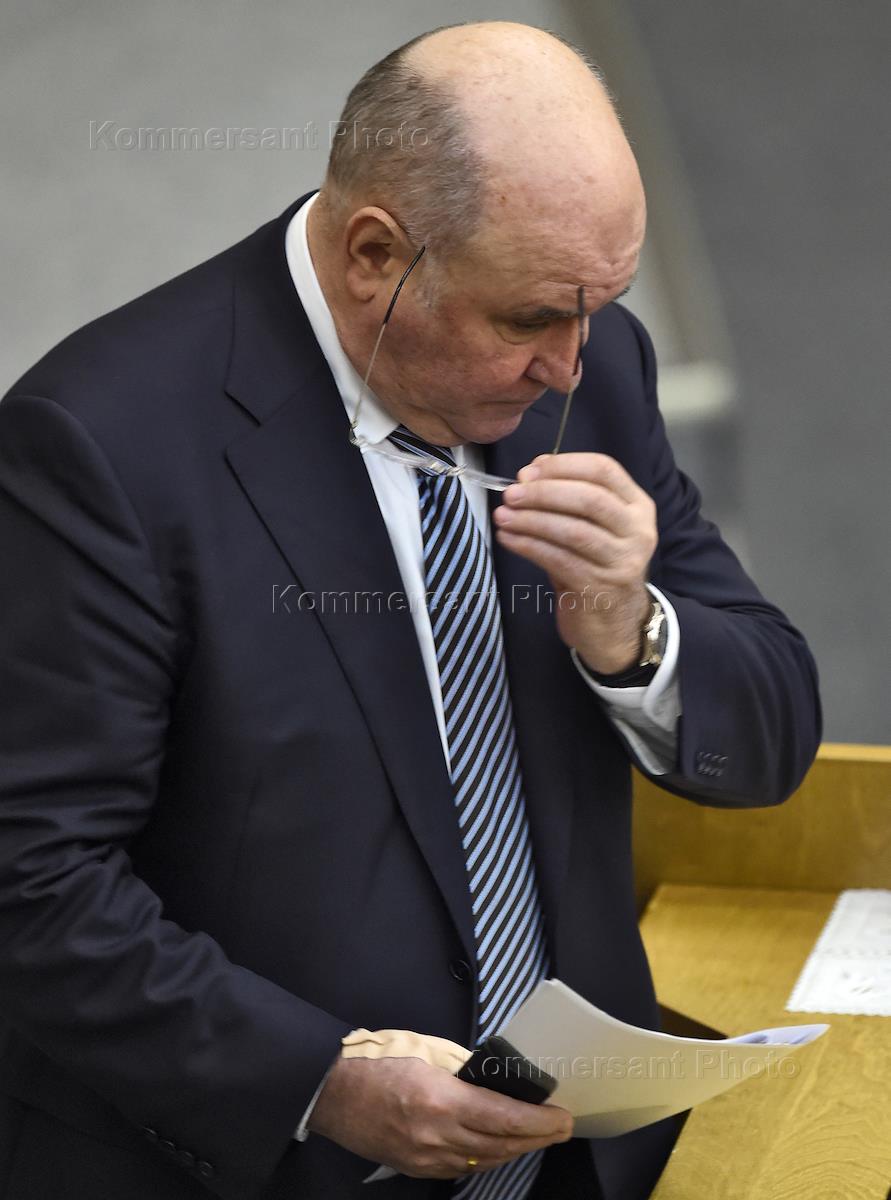 Член комитета Государственной думы (ГД) России по бюджету и налогам Юрий Васильев на пленарном…