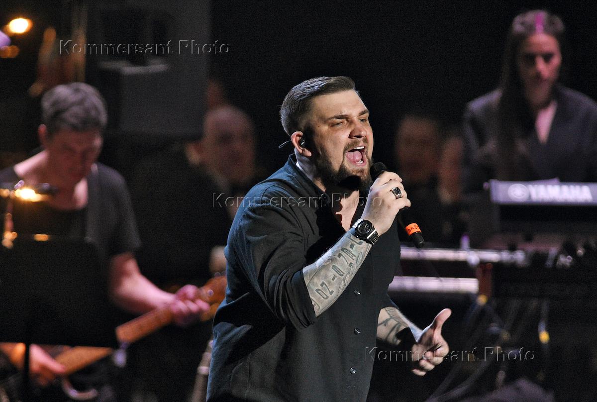 Рэп-исполнитель Баста (Василий Вакуленко) во время выступления в Государственном Кремлевском Дворце.