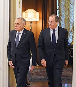 Политика Встреча Министра иностранных дел России Сергея Лаврова с Министром иностранных дел и международного развития Французской Республики Жан-Марком Эйро.