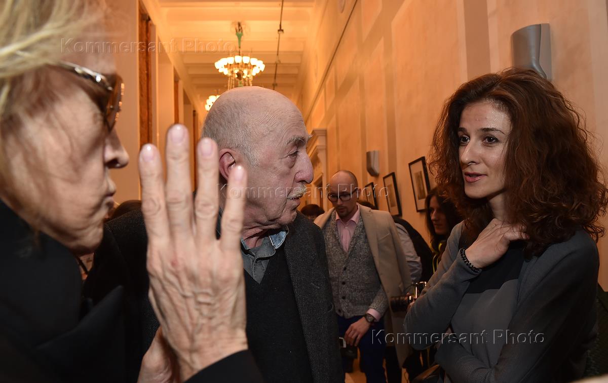 Кинорежиссер Отар Иоселиани (в центре) перед началом показа своего фильма "Фавориты луны" в рамках…