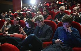 Зрители перед началом показа фильма режиссера Отара Иоселиани "Фавориты луны" в рамках кинофестиваля…
