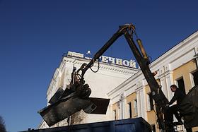 Виды Перми. Речной вокзал. Начало ремонта здания.