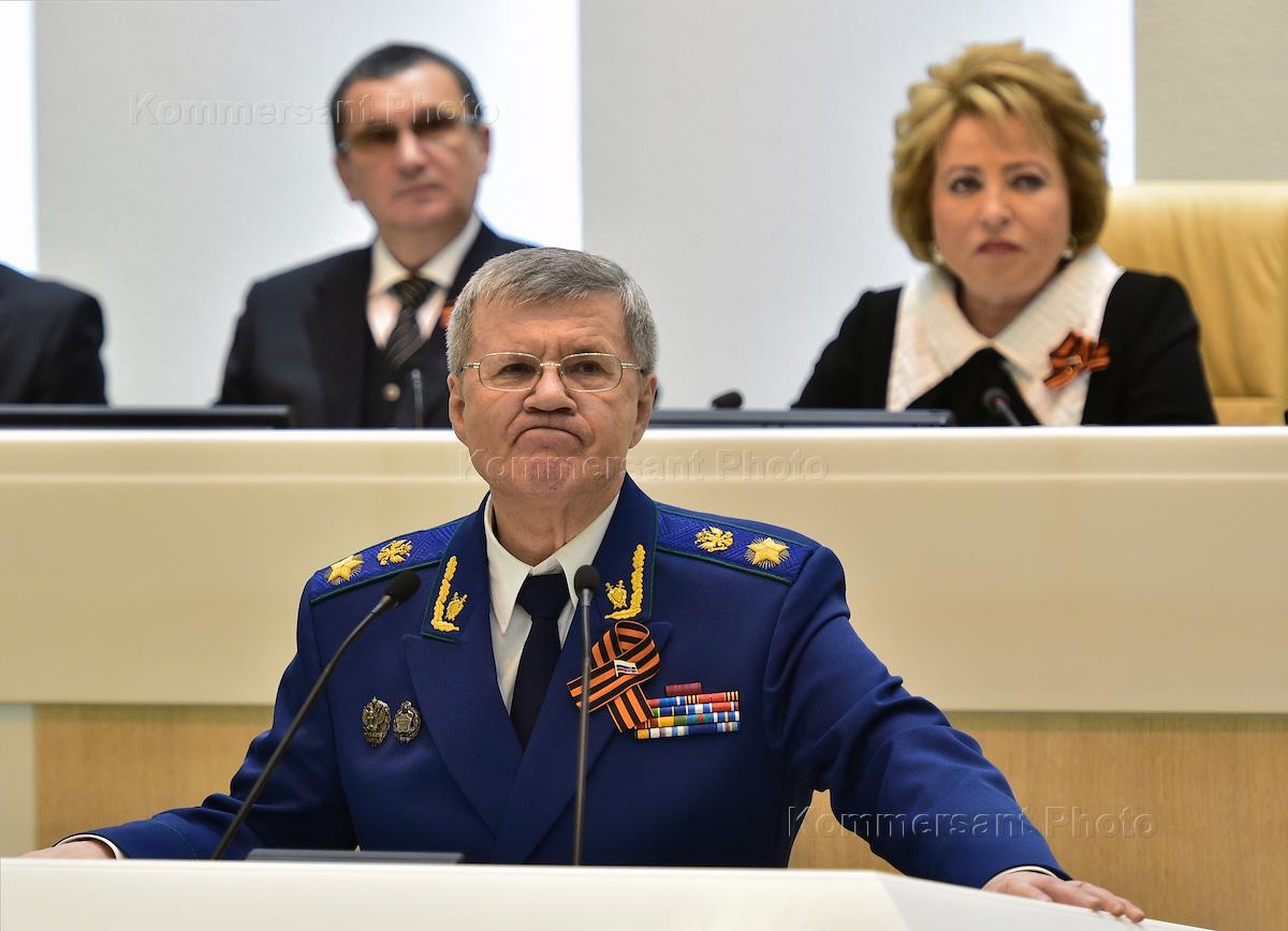 Пленарное заседание Совета Федерации России. Генеральный прокурор России Юрий Чайка (слева) и…