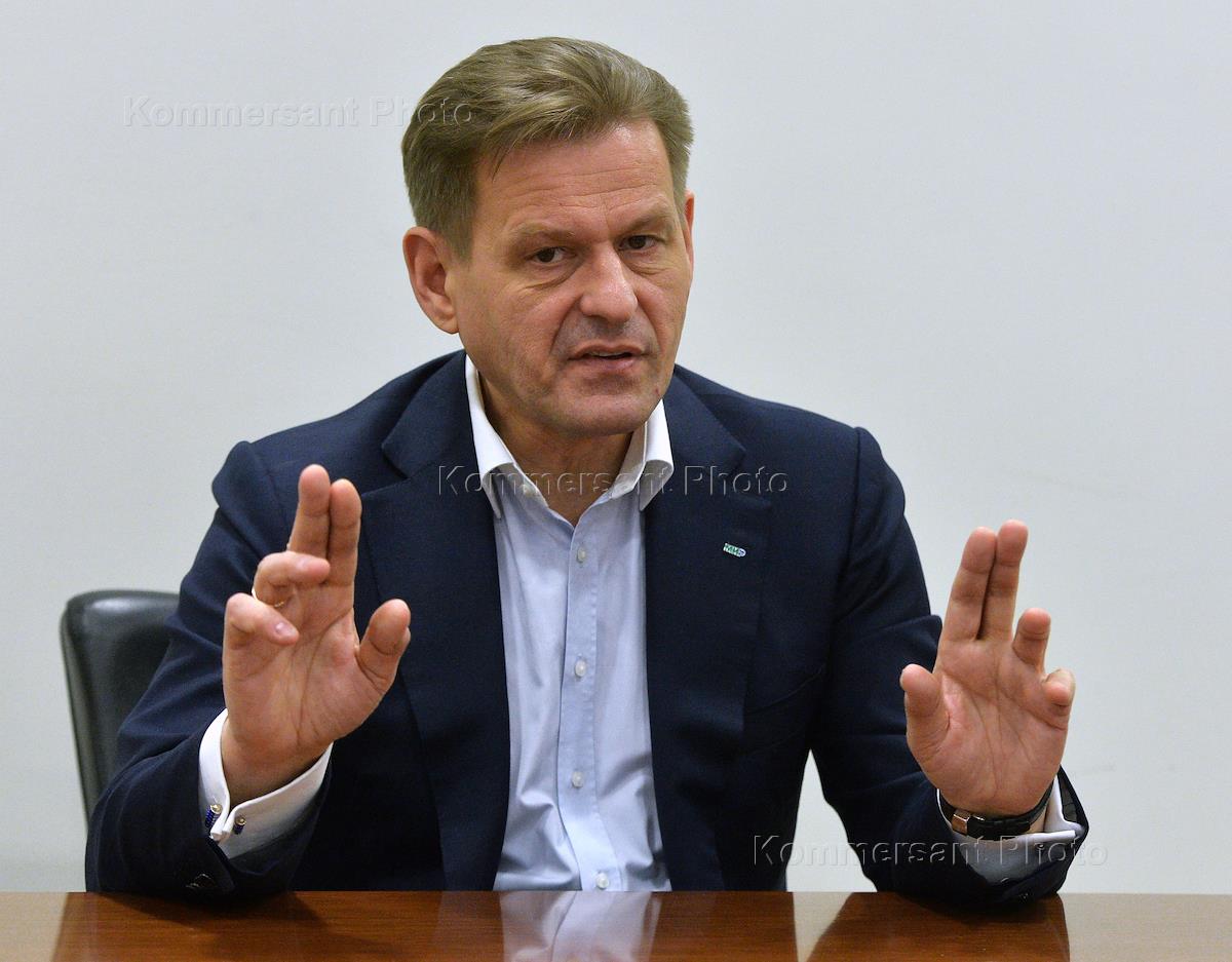Глава Национальной системы платежных карт Владимир Комлев во время интервью.