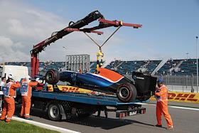 Российский этап чемпионата мира по кольцевым автогонкам в классе "Формула-1". Гонщик команды "Манор"…