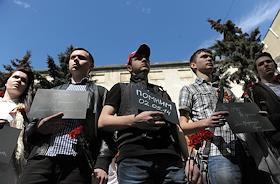 Акция "Помним" всероссийского общественного движения "Антимайдан" у здания посольства Украины, посвященная памяти о погибших в результате пожара в одесском Доме профсоюзов 2 мая 2014 года