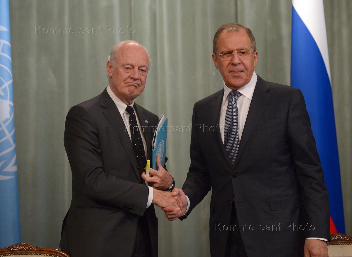 Встреча Министра иностранных дел Российской Федерации Сергея Лаврова со Спецпосланником Генсекретаря ООН по Сирии Стаффан де Мистура.