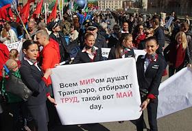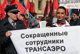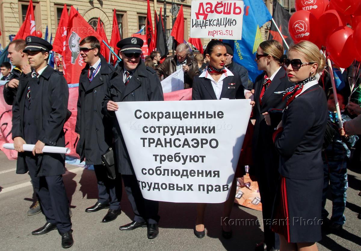 Первомайская демонстрация. Бывшие сотрудники - борпроводники - авиакомпании "Трансаэро", сокращенные…