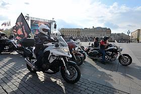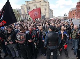 Байкеры клуба "Ночные волки" во время возложения венков к Могиле Неизвестного Солдата в…