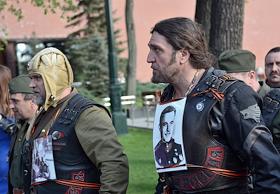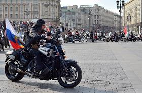 Байкеры клуба "Ночные волки" во время возложения венков к Могиле Неизвестного Солдата в Александровском саду.