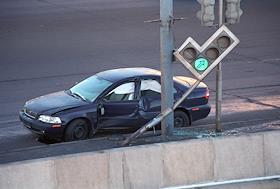 Дорожно-транспортное происшествие. Автомобиль врезался в светофор.
