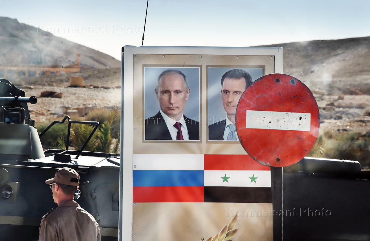 Жанровая фотография. Ситуация в Пальмире. Баннер с портретами президента России Владимира Путина и…