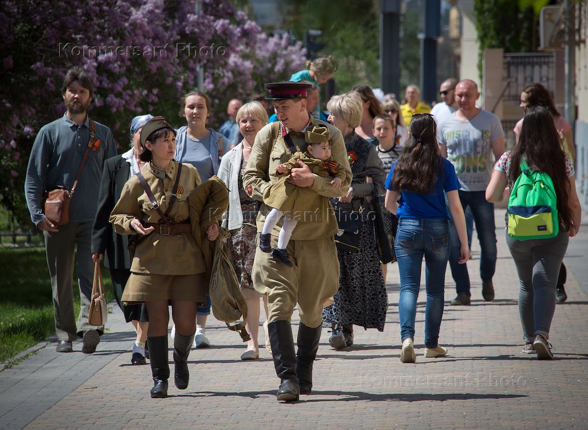 Общество Жанровые снимки. Праздничные мероприятия, посвященные 71-й годовщине Победы в Великой Отечественной войне 1941–1945 годов. акция "Бессмертный полк" в Волгограде 9-го мая.