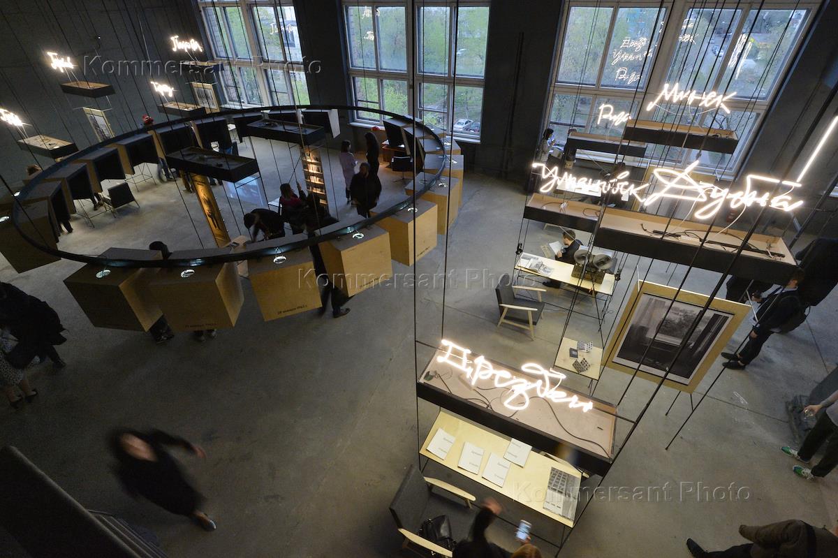 Открытие выставки Кирилла Глущенкова "Прекрасен облик наших будней" в пространстве одной из бывших московских фабрик на улице Полковой.