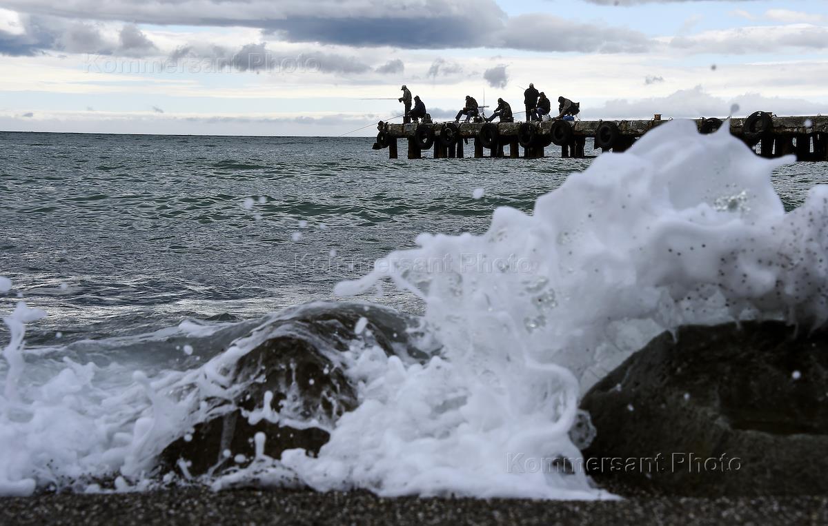 Жанровая фотография. Рыбаки на пирсе Черного моря.