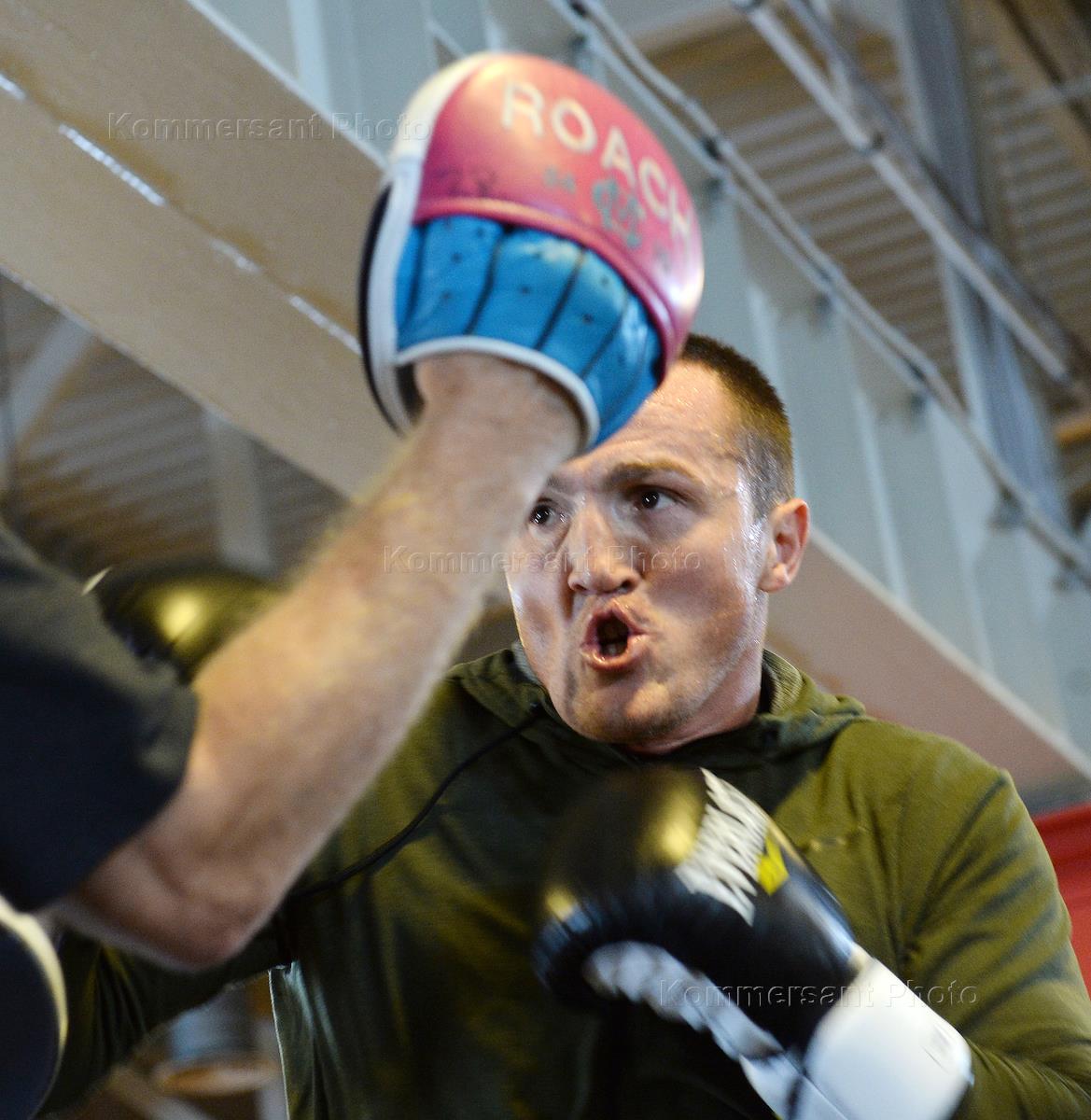Российский боксер Денис Лебедев во время открытой тренировки перед боем с аргентинским боксером…